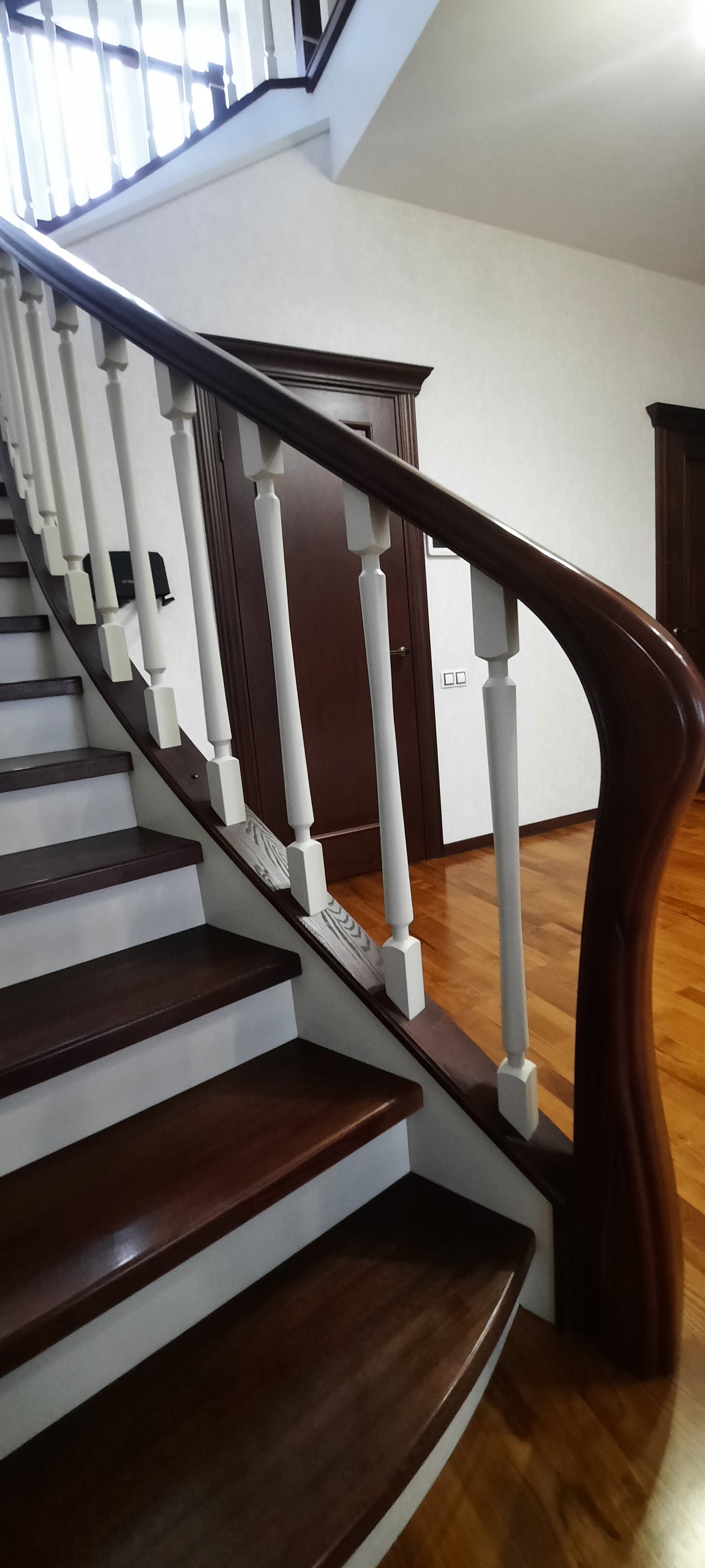 - Лестница с забежными полукруглыми ступенями из массива сосны